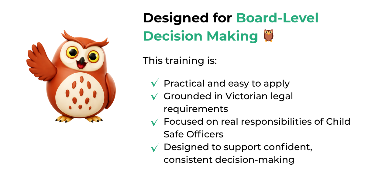 Equip your Board with the knowledge and confidence to meet its child safety obligations and provide effective oversight.