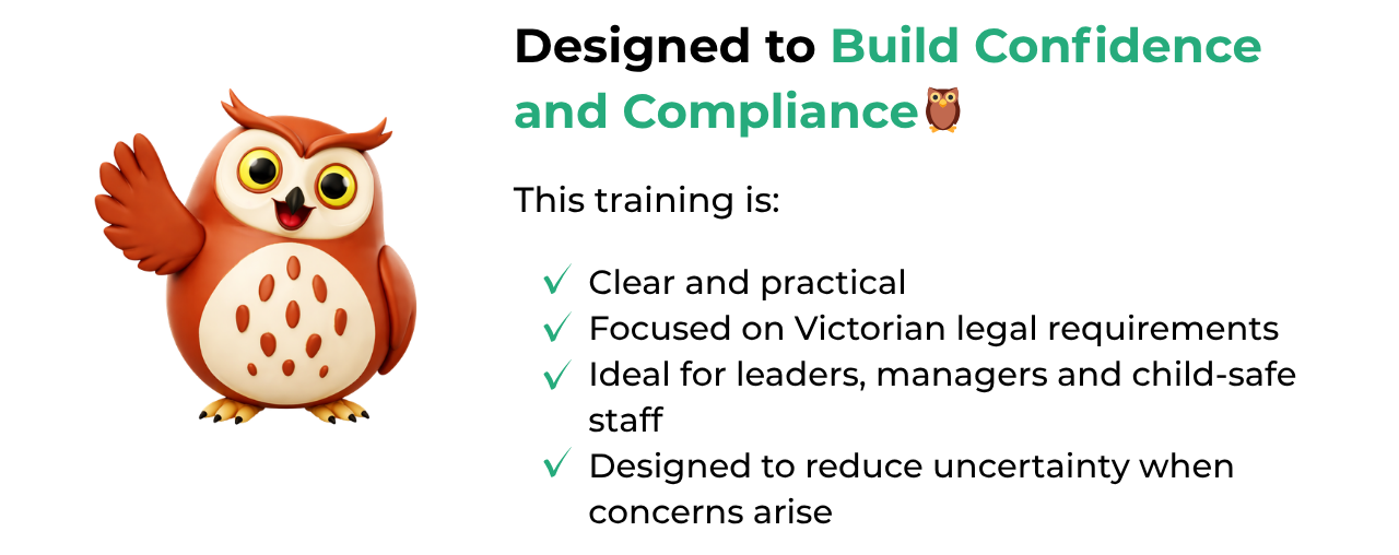 This module is designed to provide clear, practical guidance on Victoria’s Reportable Conduct Scheme so your organisation can respond confidently, meet obligations, and strengthen child-safe practices.